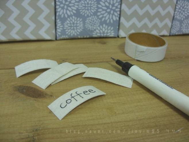 패브릭 테이프를 잘라 펜으로 적어주세요.