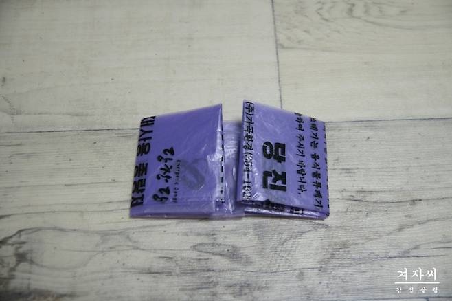 재사용 종량제 봉투와 음식물쓰레기 봉투 그리고 휴대용 장바구니와 가방이나 신발 살 때 주는 주머니 등.