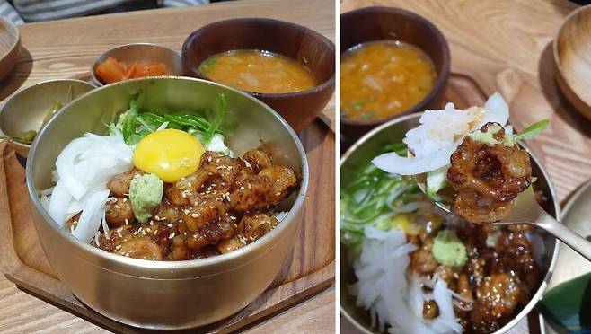 후토마키 못지않게 유명한 메뉴는 바로 대창 덮밥이에요. 처음엔 생각보다 그릇이 작아서 양이 적지 않나 걱정했는데 그릇 가득 대창이 담긴 것을 보고 생각을 바뀌었어요. 먹기 좋게 밥을 비벼 대창을 하나씩 올려 먹으면 고소함과 매콤함이 어우러져 숟가락을 내려놓을 수가 없답니다. (대창이 쫄깃쫄깃)