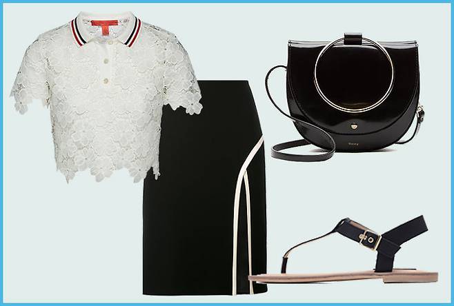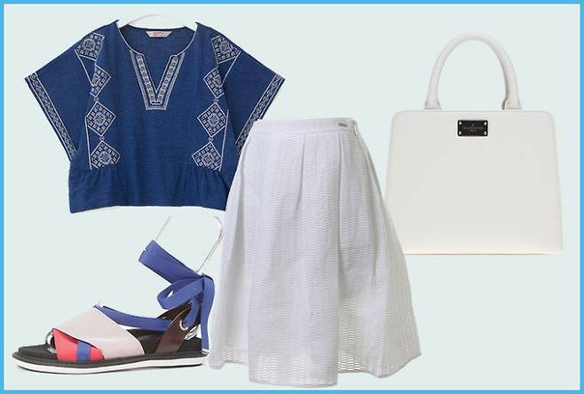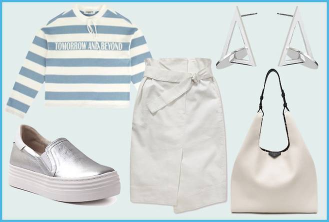 스커트:아르마니 익스체인지 / 가방:폴스부띠끄