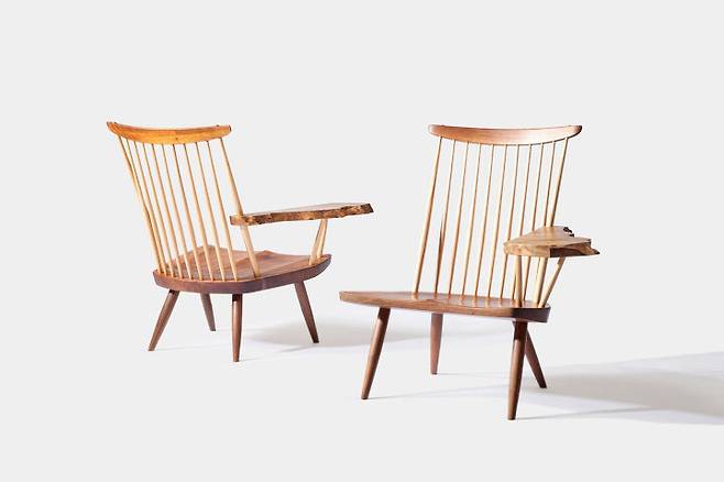가구 작가 겸 건축가인 조지 나카시마는 우드슬랩의 최초 창시자라고 볼 수 있다. 애플의 스티브 잡스가 자신의 집에 둔 유일한 가구라며 그의 작품을 극찬하기도 했다. 대표작 중 하나인 ‘라운지 암 체어(Lounge arm chair)’는 나뭇결과 모던한 디자인의 적절한 매칭이 특징이다. 특히 팔걸이 부분은 목재의 자연스러움을 풍부하게 살렸다. 나무를 그대로 옮겨 놓은 듯한 내추럴함이 돋보이며, 독특한 팔걸이는 학교에서 사용하는 책상이 달린 의자를 연상시킨다.