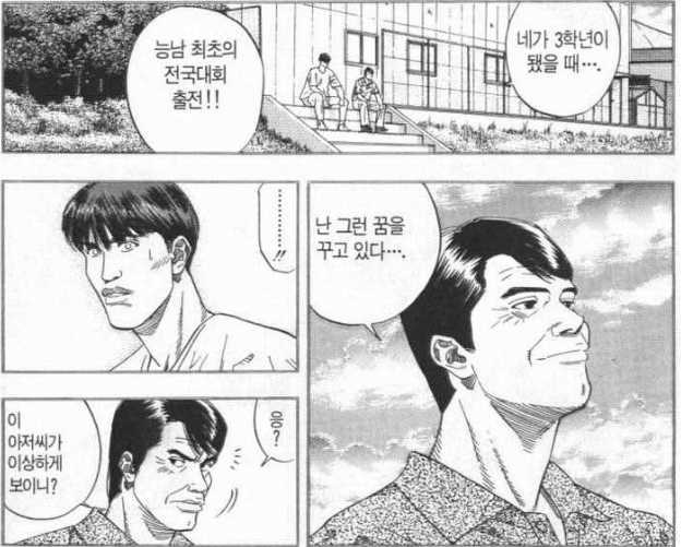 비록 본인이 생각한 3개년 계획에서 많은 이를 북산에 뺏겼지만, 그의 말대로라면 원래 그 조합에 준하는 다른 조합을 만들어낸다. 영수, 정태가 그런 애들로 보이진 않지만(…) 아무튼 인력구성에 플랜B가 있다는 이야기고, 팀 케미스트리와 밸런스를 잘 이해하고 있다는 것이다.