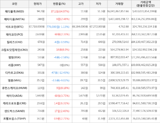 가상화폐 메디블록 상승세.. 전일대비 +64.97%