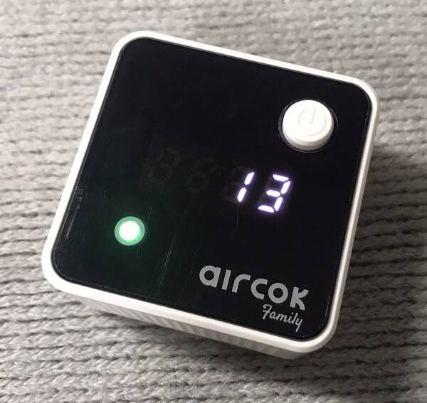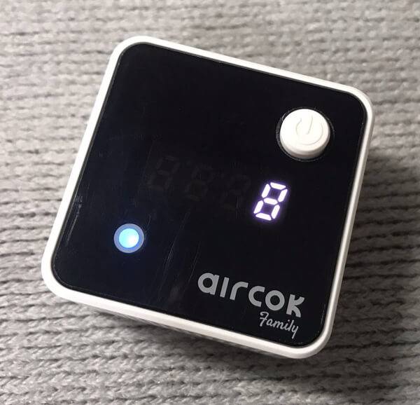 에어콕 패밀리의 전면에는 전원 버튼과 디스플레이, LED 지시등이 있다. 전원 버튼을 약 1초간 누르면 디스플레이와 LED 지시등이 표시되면서 전원이 켜지고, 다시 약 1초간 누르면 디스플레이와 LED 지시등이 꺼지면서 전원이 꺼진다. 전원을 켜면 디스플레이에 현재 위치의 미세먼지 측정값이 나타나고, 미세먼지 상태를 직관적으로 파악할 수 있도록 파랑/초록/노랑/빨강 네 가지 중 한 가지 색상이 LED 지시등에 표시된다.