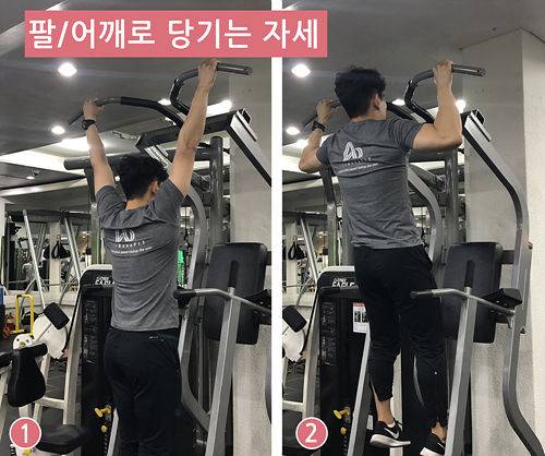1. 몸에 힘을빼고 매달린다.(어깨와 귀가 가까운상태)