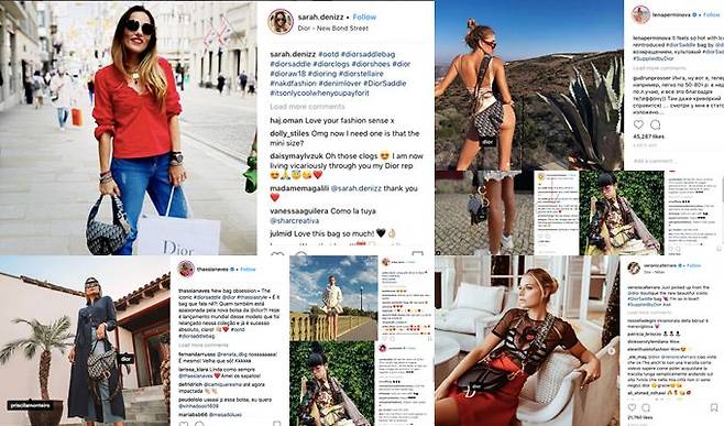 ↑사진 = 인스타그램 피드에 디올 '새들 백'을 착용한 각국 스타&인플루언서