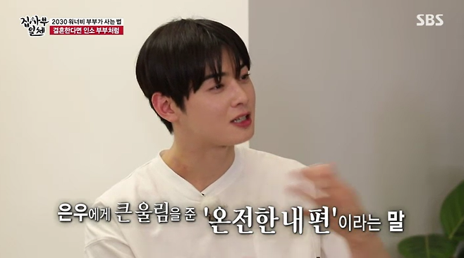 그렁그렁한 표정으로 인소 부부를 바라보던 차은우는 급기야 "이런 거 보면 결혼하고 싶다"라면서 말을 잇지 못했다.