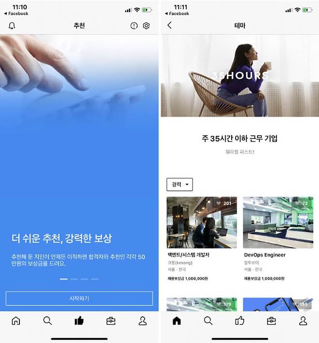 > 다양한 테마를 정해 그에 맞는 기업과 채용 정보를 소개해 주기도 한다