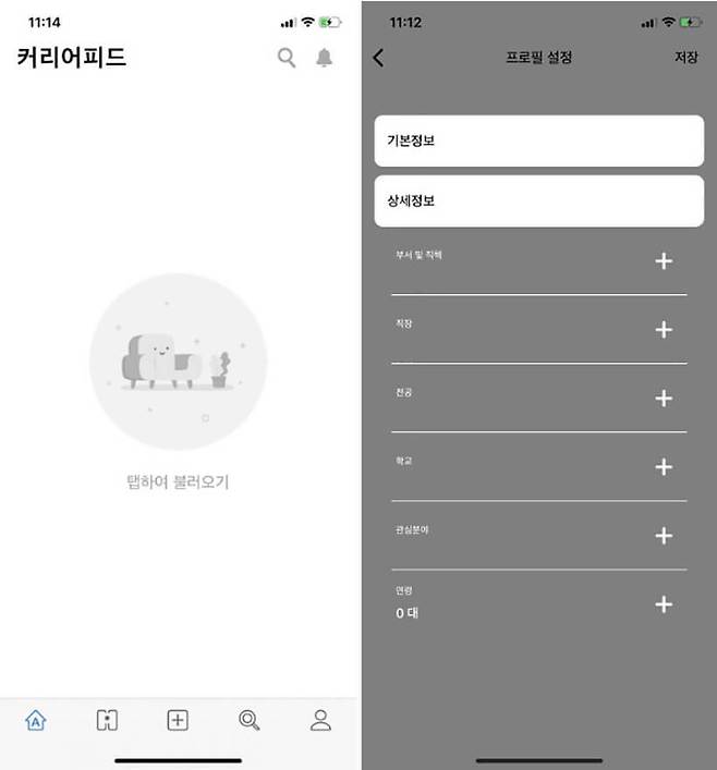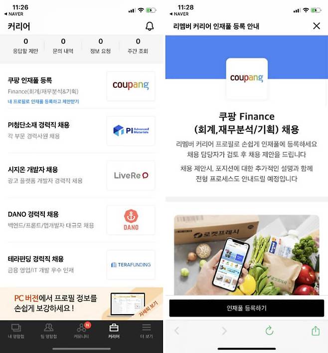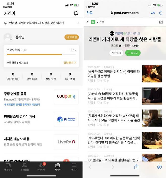 > 리멤버 앱 내 리멤버 커리어 서비스 화면