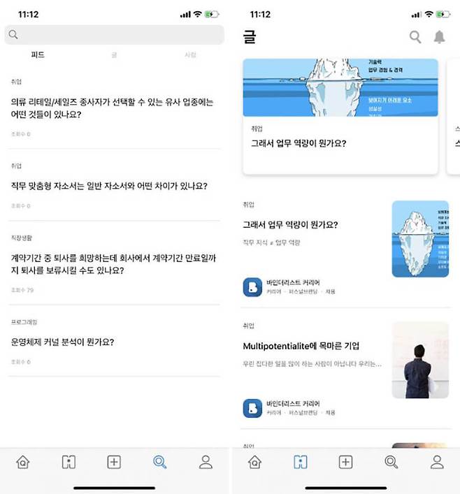바인더리스트는 개인의 포트폴리오를 기반으로 하고 있어 콘텐츠 제작자처럼 업무 성과가 결과물로 나타나는 직군이 활용하기에 좋다. 특히 인공지능을 통해 업무 Q&A와 블로그 기능을 제공하고 있어서인지 비즈니스가 아닌 소셜 네트워킹 앱으로 분류되고 있다. 구직자의 성향에 맞는 개인 맞춤 콘텐츠를 제공한다는 점에서 오히려 '요즘 스타일'에 맞는 커리어 관리 앱이 아닌가 싶다.