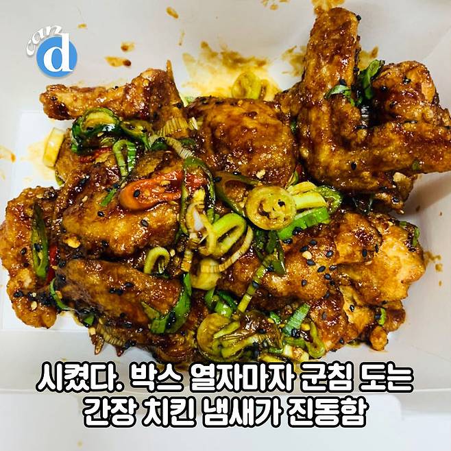 박스 열자마자 군침 도는 간장 치킨 냄새가 진동했는데요.