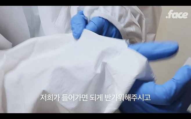 코로나 병동으로 파견을 나온 후, 수진님은 경북에서 이송되어 온 한 환자를 만나게 됩니다. 그 환자를 보러 격리 병실 안으로 들어가기 위해서는 정말 많은 과정을 거쳐야했죠.