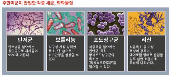 한국에서 세균실험 관련 사고가 터진 것은 2015년이다. 경기도 오산의 미국 공군기지에 세균실험 목적으로 배송된 ‘살아 있는(활성) 탄저균’에 군인과 시민들이 노출되었다. 이로 인한 논란이 한창이던 2016년, 부산으로 이전한 주한 미해군 사령부가 8부두에서 군사용 세균실험을 벌이고 있다는 사실이 드러났다. 그해 봄, 리신과 포도상구균, 보툴리늄 등 맹독성 생화학물질 3종이 페덱스 우편을 통해 부산항 8부두로 반입되었던 것이다.