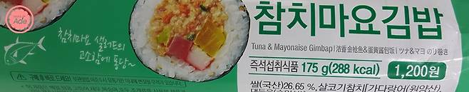 1) CU 고소한 참치마요김밥 2/3줄만 먹을 경우