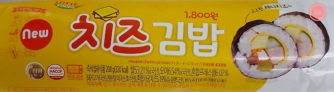 요즘 편의점 김밥들이 참 잘 나온다. 치즈가 아쉽지 않게 잘 자리잡고 있다. 치즈김밥은 보통 사이즈다. 208g에 320kcal 되시겠다.