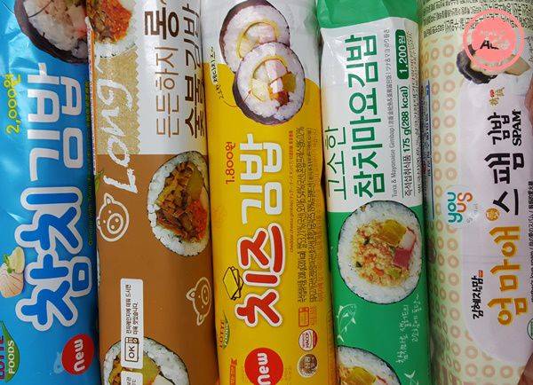 다이어트 중에 과자나 빵을 먹기는 부담스럽고, 김밥을 먹자니 얼만큼 먹어야 할지 모르겠는 이들을 위해 출동~! 회사 근처에 있는 편의점을 순방하고 김밥 5줄을 손에 넣었다.