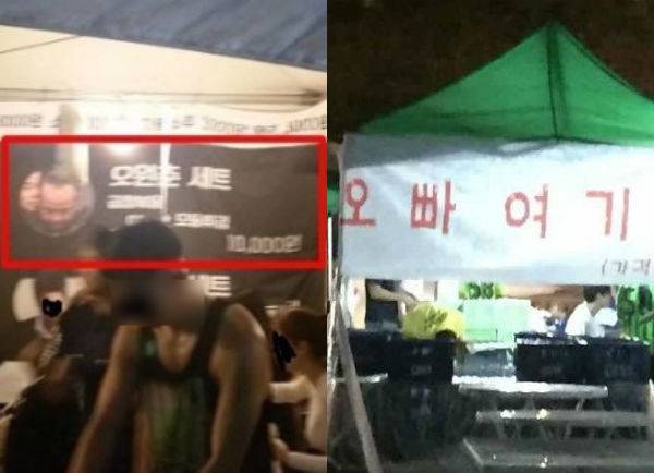한양대학교 에리카 캠퍼스의 현수막도 상식 밖의 내용을 담아 비판을 받았다. 2015년 9월22일 온라인 커뮤니티에는 ‘공포의 대학교 주점 메뉴’라는 제목의 글과 사진이 올라왔다. ‘방범주점’이라는 이름의 대학 주점에선 ‘오원춘 세트’라는 현수막을 걸었다. 곱창볶음과 튀김 등의 메뉴에 살인범 오원춘의 이름을 넣고 판매한 것이다. 또 미성년자를 성폭행한 혐의로 실형을 선고받은 연예인 고영욱의 이름을 딴 ‘고영욱 세트’라는 안주 메뉴도 있었다. 이들은 오원춘과 고영욱 사진을 담은 현수막을 내걸고 이튿날까지 영업했다.
