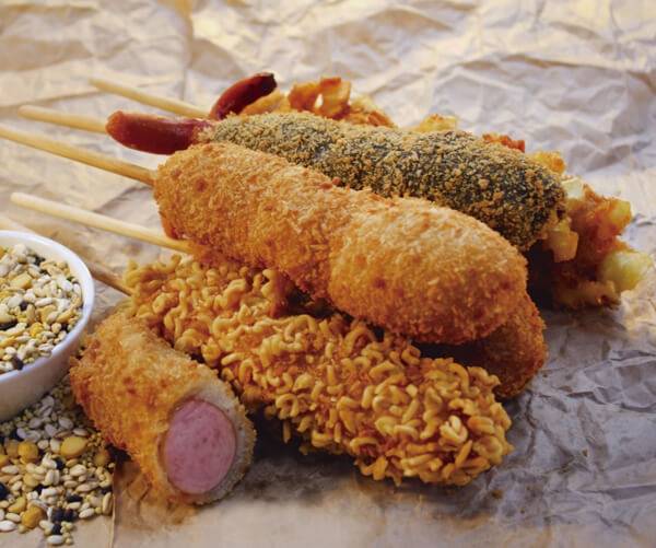 핫도그 붐이라 해도 과언이 아닐 정도로 골목 곳곳마다 다양한 핫도그 전문점이 자리 잡고 있다. 소시지에 튀김옷을 입혀 바삭하게 즐기던 평범한 핫도그가 다양한 토핑을 더 해 새로운 옷을 입으면서 좋은 반응을 얻고 있는 것. 간단하게 끼니를 해결할 수 있고, 저렴한 가격대로 즐길 수 있어 많은 사람이 찾고 있다. 핫도그 경쟁이 불붙은 만큼 종류도 다양하다. 라면땅, 먹물, 치즈, 타코야끼, 떡 등 다양한 토핑과 기호에 따라 각종 소스를 더 뿌려 먹을 수 있다. 각기 개성을 담은 핫도그로 승부를 건 핫도그 전문점. 과연 당신의 입맛을 사로잡을 핫도그는 뭐가 있을지 알아보자.