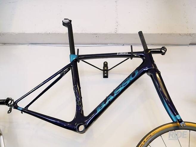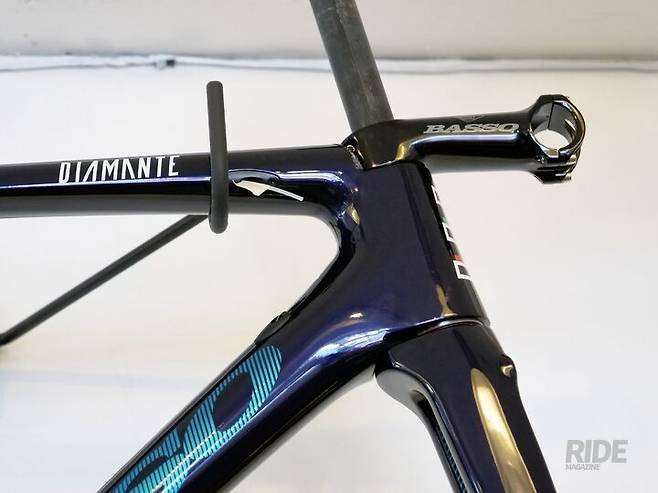바쏘의 ‘에어로 로드바이크’ 디아만테 SV 이름에 붙는 SV는 ‘매우 빠르다’는 의미인 슈퍼 벨로체(Super Veloce)의 약자다. 디아만테가 좀 더 편안한 승차감을 가지고 있는 반면, 디아만테 SV는 디아만테와 다른 카본 소재의 적용뿐 아니라 카본 레이어가 한 장 더 들어갔기 때문에 더 단단한 프레임 성향의 슈퍼 스피드를 추구하는 에어로 로드바이크인 것이다.