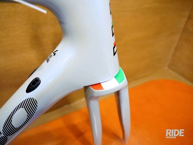 새로운 형태의 포크 디자인은 커브 주행 시 포크 위쪽의 넓은 면과 포크 아래쪽의 유연성으로 포크가 받는 스트레스를 줄이도록 설계됐으며, 핸들바를 좌우로 크게 꺾었을 때 포크 상단에 숨어 있던 이탈리아 국기 색상(녹색, 하양, 빨강)이 드러나 보이는 것이 특징이다.