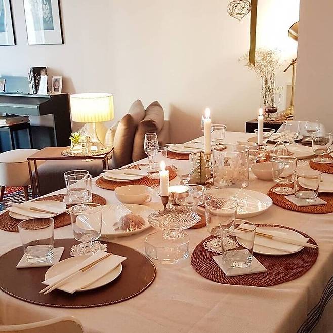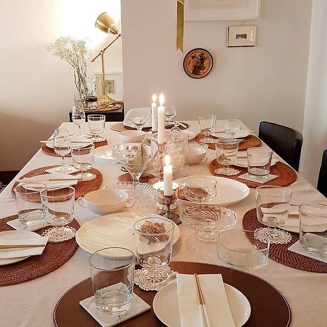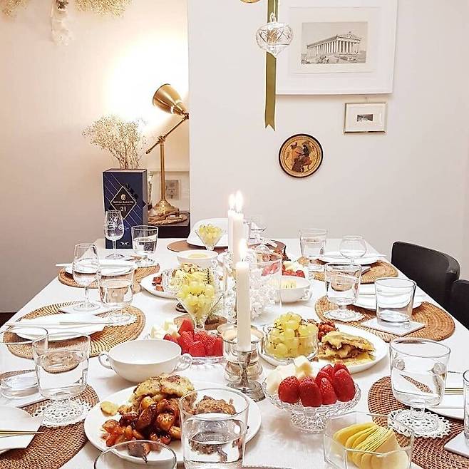 소중한 사람들과 파티를 함께하기 위해 손님들이 오기 전에 테이블 세팅을 시작했어요. 이날을 위해 새롭게 산 테이블보를 촤르륵 펼쳐놓고 초를 켜놓고 곧 다가올 행복한 시간의 분위기를 상상하는 건 매우 설레는 일입니다.