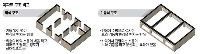 박지영 LH 토지주택연구원 수석연구원은 "일반 아파트의 벽식 구조는 벽으로 하중을 지탱하기 때문에 내력벽에 의해 윗집과 옆집 소음이 잘 전달된다"며 "반면 라멘 방식과 무량판 구조는 내력벽이 없어 소음 차단 효과가 좋은 편이다. 특히 라멘 방식은 보가 소음을 잡아주는 역할까지 한다"고 설명했다.