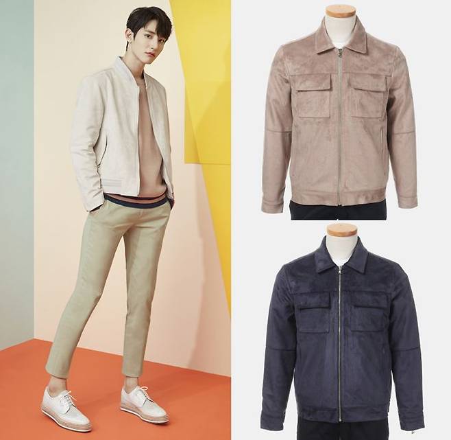 이수혁이 선보인 「애드호크」스웨이드 재킷은 트렌디하면서도 베이직한 디자인으로 뜨거운 호응을 얻고 있다. 이 스웨이드 재킷은 높은 판매율을 보이며, 완판 행진에 힘입어 현재 3차 리오더까지 진행 중이다. 이수혁처럼 무난한 재킷과 함께 파스텔톤의 이너를 매치하고 화이트 스니커즈로 마무리해 깔끔하고 훈남룩을 완성해보자.