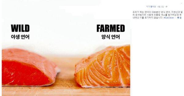 “우리가 먹는 연어의 대부분인 양식 연어. 자연산과 달리 회색빛이라 사료에 주홍빛 색소를 첨가하는데 국내에선 이를 표기하지 않습니다.”