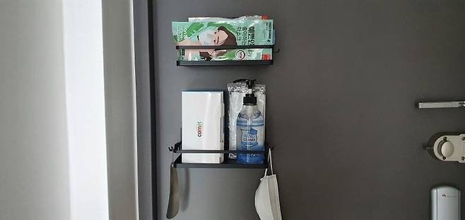 집마다 현관의 생김새가 다 다르겠지만, 일단 우리 집은 현관에 따로 수납할 공간이 없다. 이 시국 마스크를 둘 곳이 없어서 현관문에 부착할 자석 선반을 샀다.