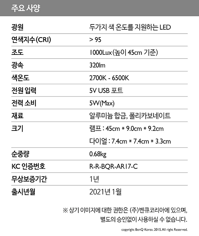 제품 공식 정보(DB) : https://www.benq.com/ko-kr/lighting/computer-desklamp/screenbar-plus.html