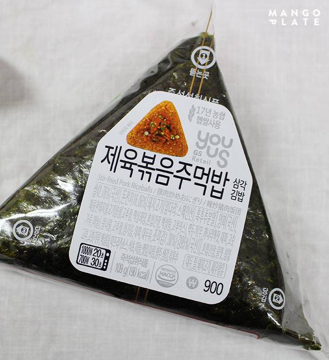 삼각김밥에 양념 밥이 들어있으면 일단 평타 이상은 한다고 봐야죠! 제육볶음 주먹밥도 역시 돼지고기 고추장 볶음에 야채와 밥을 볶은 그 맛입니다. 900원짜리에서 뭘 기대하겠냐만은 제육이 좀 잘게 되어있어서 식감은 평범. 하지만 매콤 달달한 양념이 입맛을 돋우어 주니 특별히 당기는 맛이 없다면 추천해요!