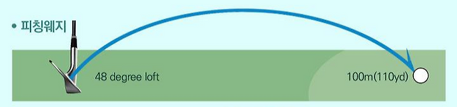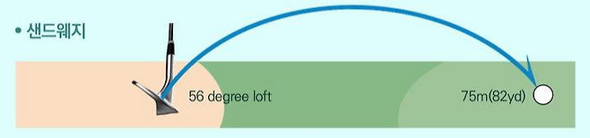 피칭과 샌드의 중간으로 4도정도의 각도 차이가 나지만, 비거리와 더불어 정교한 샷이 필요할 때 사용합니다. 피칭과 샌드웨지 두가지를 비교해서 선택하면 좋습니다.