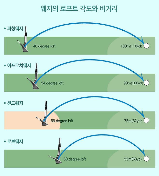높이 띄우는 로빙샷을 좋아하거나 벙커에 잘 빠지는 경우에는 58도나 60도 웨지를 추천합니다.