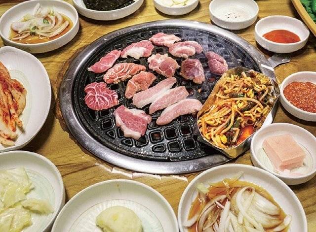 연탄불 위에 무쇠 솥뚜껑을 얹고 고기를 구워 먹는 맛집인데요.