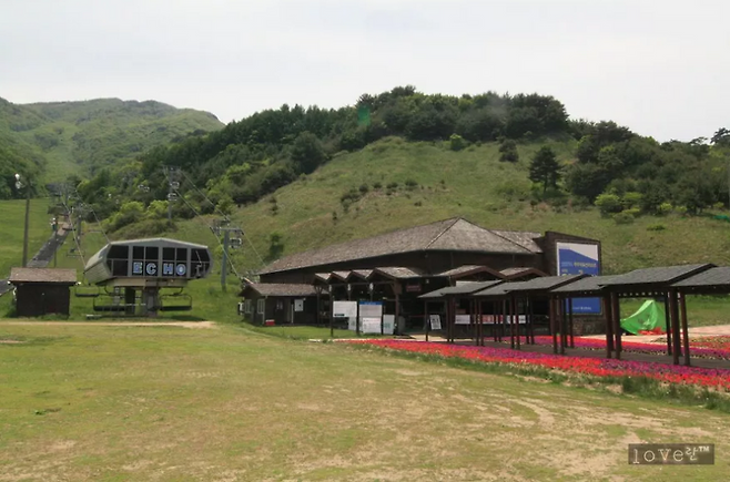 으스스해 보이는 두그루의 고목나무와 눈없는 스키장 도로도 구경한 후 들었던 생각은 겨울에 왔으면 여기서 스노우보드를 타고 내려갔을텐데 라는 아쉬움과 향적봉의 아쉬움이 뒤섞여 버렸고 안타까운 코스로 남아 버렸습니다.