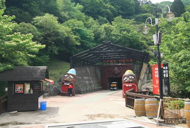 머루와인동굴의 주차장은 무료이고 성인기준 입장료가 2,000원입니다. 주차장에서 보이는 와인하우스는 특산물과 와인을 판매하고 있고 매표소는 따로 부스가 준비되어 있습니다.