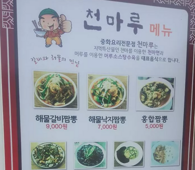 메뉴 가격은 참고만 하시고 저희는 해물갈비짬뽕과 머루소스탕수육 소를 주문했습니다. 해물갈비짬뽕은 하루에 100그릇만 판매한다고 합니다. 번호표를 받아야 해요.