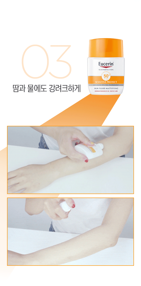 3차 방어 필터링 시스템을 적용해 UVA와 UVB 모두 즉각적으로 차단하면서 바르는 즉시 피부에 산뜻하게 밀착돼 땀과 물에 지워지지 않는 ✔유세린 선 플루이드 매티파잉 센시티브 프로텍트 50ml 32,000원.