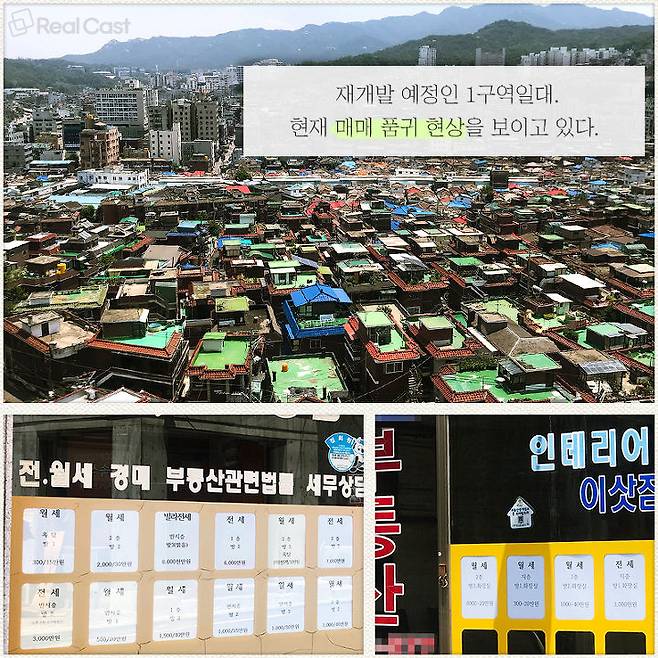 1구역 인근 한 공인 관계자는 “신림선의 1차 수혜지인만큼 매수 문의가 꾸준히 이어지고 있다”며 ”현재 시세는 3.3㎡당 2000만원에서 2500만원 사이로 경전철 등의 호재로 인한 호가가 상당히 반영된 상태이나 그럼에도 불구하고 매물 품귀 현상을 겪고 있다”고 말했습니다. 실제로 1구역 일대 부동산에 걸린 매물들을 살펴보면 전·월세 거래만이 안내되고 있고 무허가주택 물건도 찾아보기 힘든 상황입니다. 본격적으로 재개발이 진행되면 가격이 더 오를 거라는 기대감에 다들 매물을 내놓지 않고 있기 때문입니다.