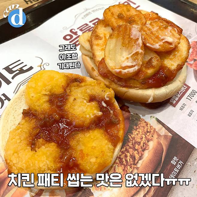 치킨 패티가 들어갔으면 더 맛있을 것 같습니다.