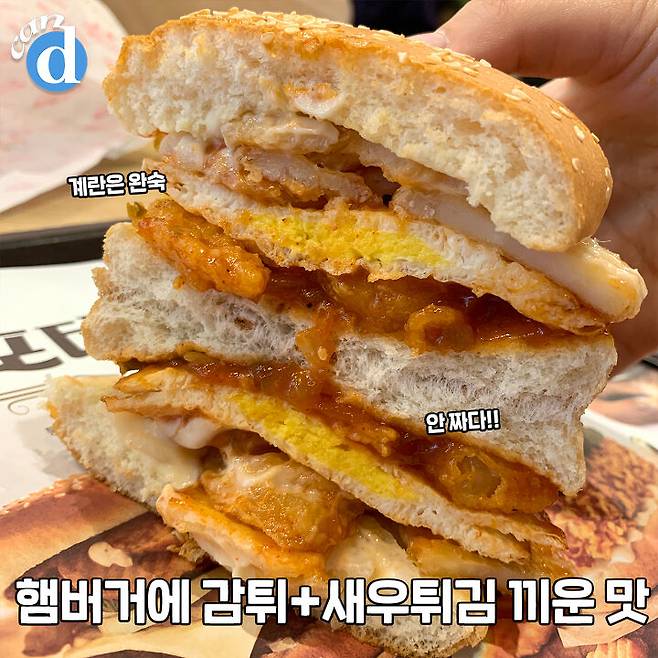 기존 햄버거에 감튀와 새우튀김을 끼워 먹은 맛...(!)
