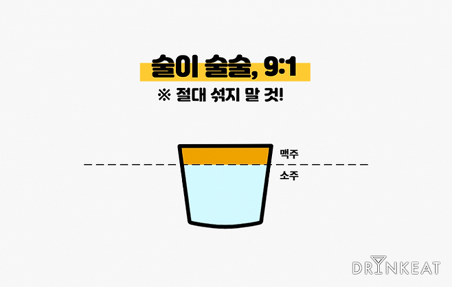 술자리에 가면 소맥 전문가들이 늘 한 명씩 있죠. 그들의 말을 따라 소맥을 타면, 인상 찌푸리게 되는 알코올 맛이 전혀 나지 않아 맛있는 소맥이 완성된답니다.