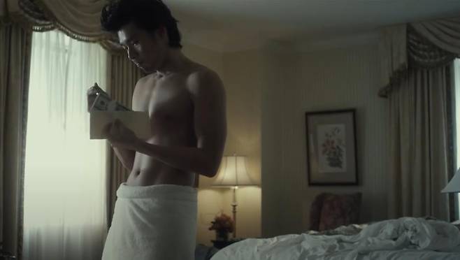극 중 시애틀에 온 현빈이 여성 고객과 관계를 갖고 샤워를 한 후 고객이 놓고 간 돈을 세는 장면.