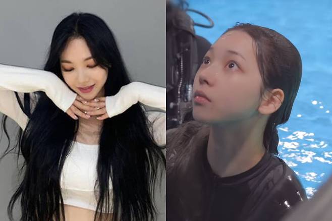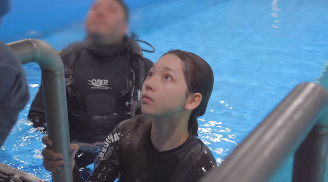 영상에서 에스파 멤버 카리나는 스킨스쿠버를 연습하는 모습을 선보였습니다.