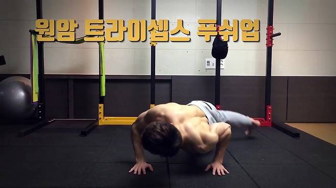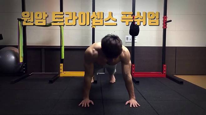 삼두근육을 발달시켜주는 푸쉬업입니다.