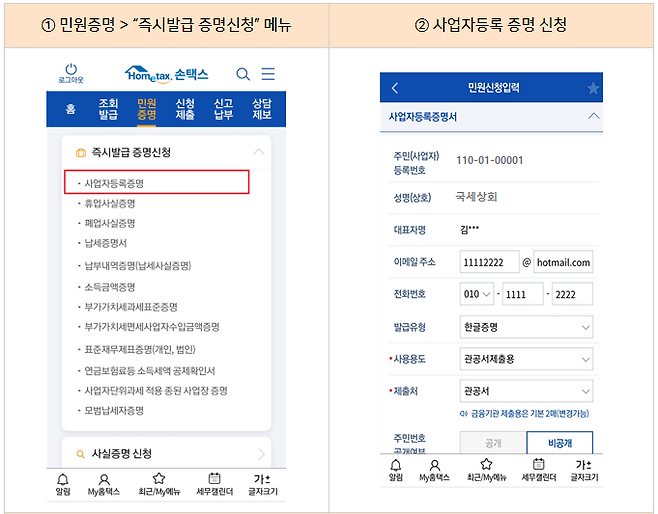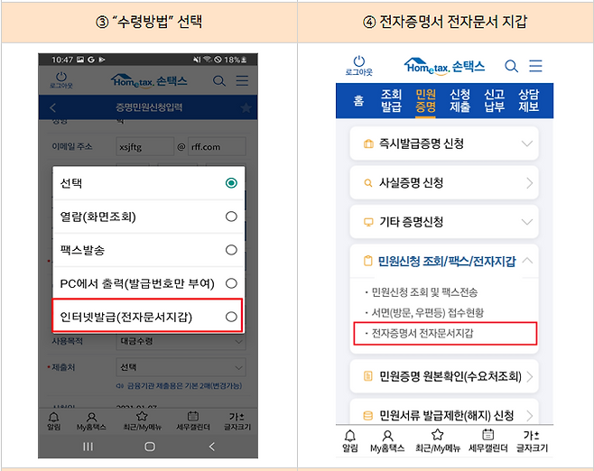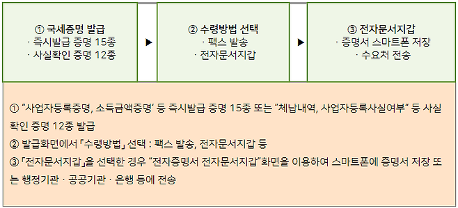 국세증명민원 발급 시 전자문서지갑을 이용하여