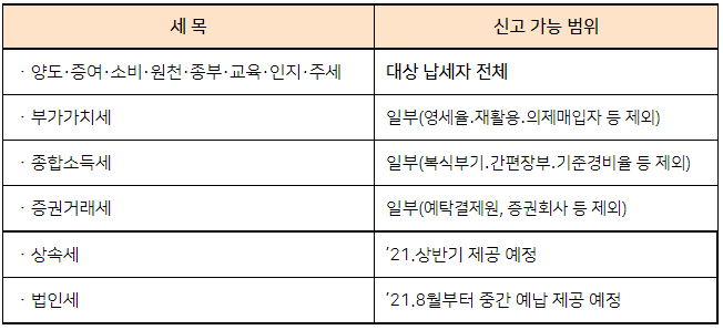그동안 모바일에서 가능했던 국세 증명발급, 전자고지·송달장소 신청 등 65종의 민원서비스에 더해 과세전적부·이의신청·심사청구 등의 불복청구, 납세자보호·고충 민원, 신고기한연장, 법인 사업자등록 등 대부분의 서비스(317종)를 추가로 이용할 수 있습니다.