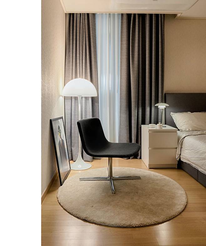 침대 배치를 바꾼 덕에 창문 앞쪽으로 여분의 공간이 생겼어요. 자기 전에 짧은 취미 시간을 즐길 수 있도록 보드라운 러그와 라운지 체어를 배치해 드렸습니다.