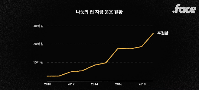지난 10년 동안 후원금은 꾸준히 늘었고, 2019년 후원금은 26억원 이었습니다.