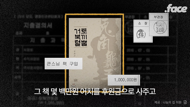 나눔의집 법인 대표 이사인 큰 스님 책을 후원금으로 사고,